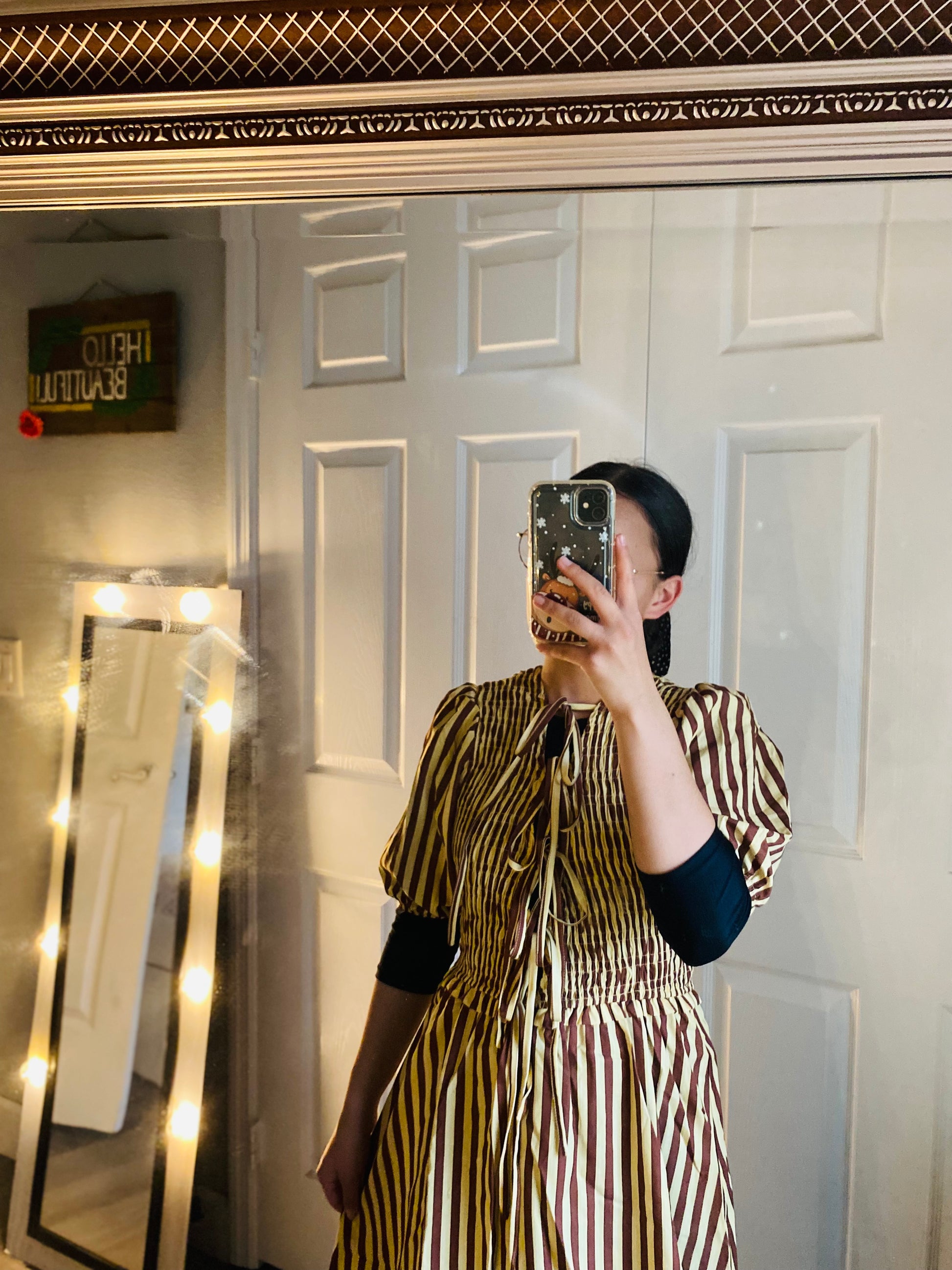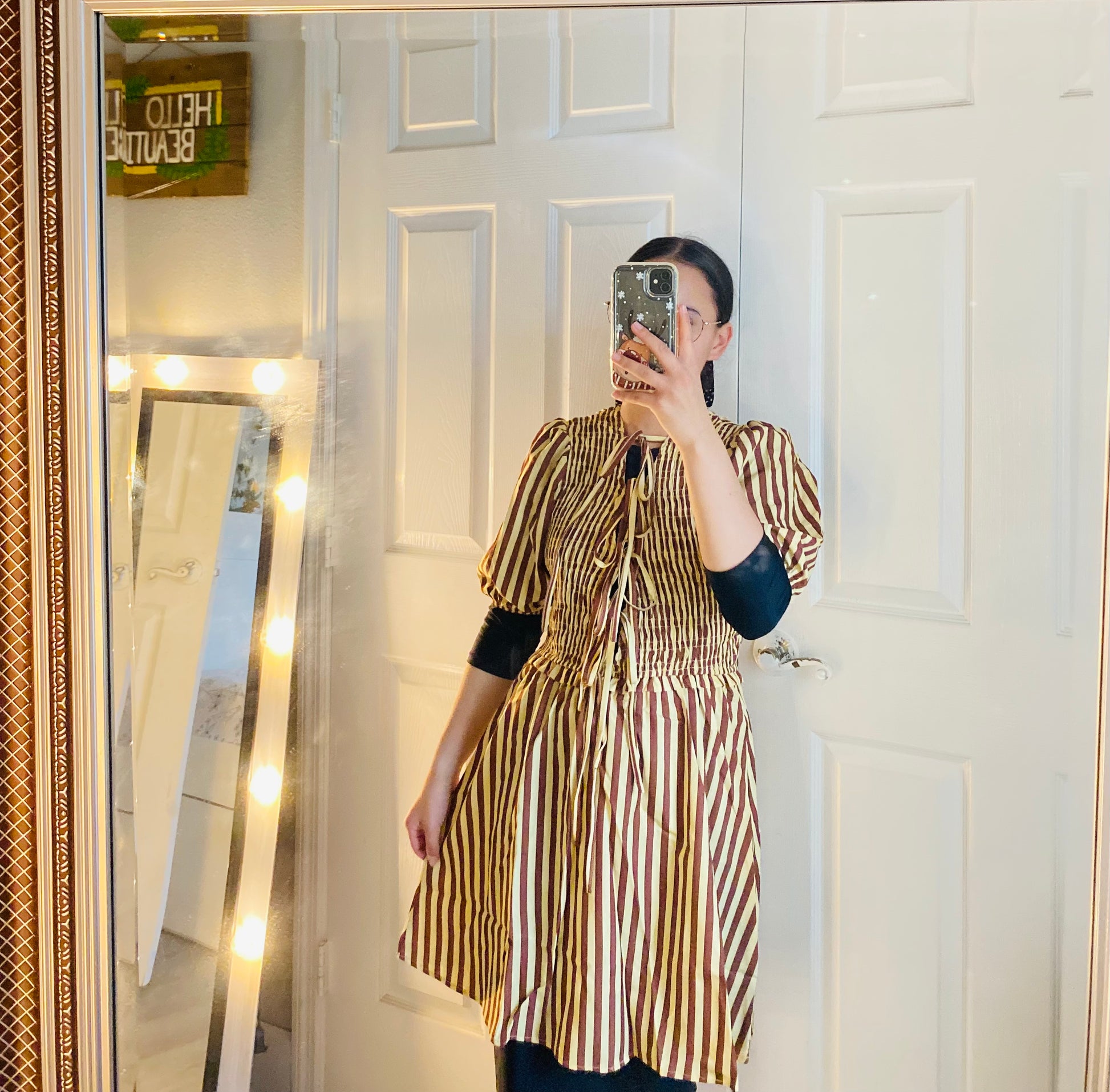 Introducing our Brown and Yellow Top - the perfect combination of style and sophistication. This cute bow dress adds a touch of charm to any outfit, making it a must-have for any fashion-forward individual. Made with high-quality materials, it's both comfortable and stylish. Elevate your wardrobe with our Brown and Yellow Top today.
